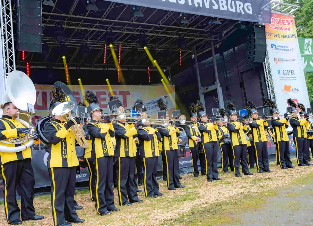 Die moderne Marchingband, die es sich zur Aufgabe gemacht hat, Musik und Show auf der Bühne, aber auch bei Umzügen zu kombinieren.