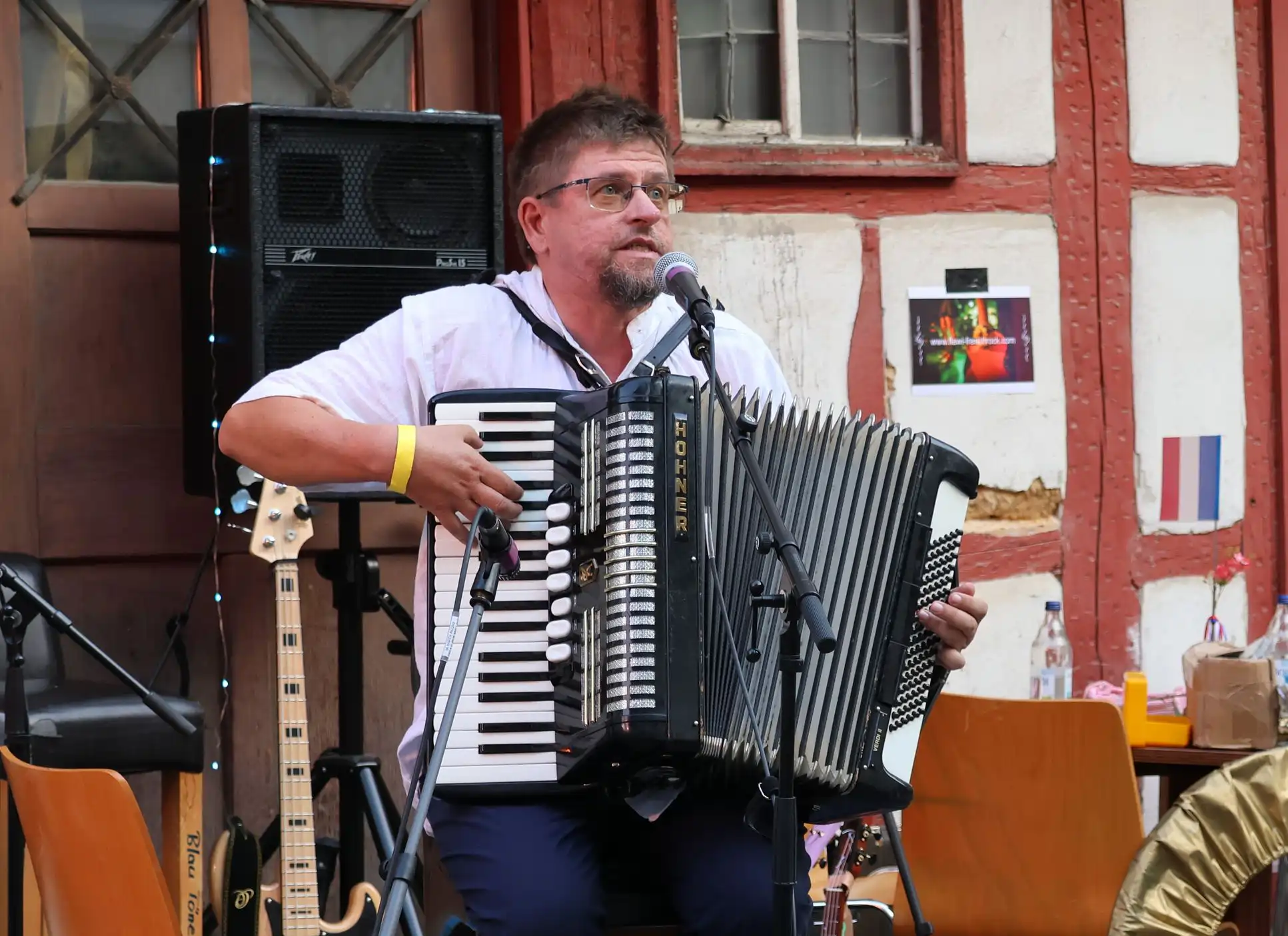Etoile de Neige, Rüdiger Schiller, aus St. Louis spielt eine Mischung aus Chansons, Tango und Folk und möchte mit seinem Akkordeon und harmonischen, ruhigen Melodien seine Lebensfreude, auch durch das Mitsingen, weitergeben. Im Juni 2021 entstand seine 4te CD mit den 11 Liedern seines ersten Musicals. Er schreibt seine Lieder vorwiegend auf Französisch, manchmal auf Englisch und neuerdings auch auf Deutsch. Finalist beim Songslam im Mai 2022 in Stuttgart und im Maerz 2023 in Erfurt. Lassen Sie sich in eine Welt der Musik mitnehmen in der sie schweben wie ein Schneestern und ihre Einzigartig-keit erkennen.